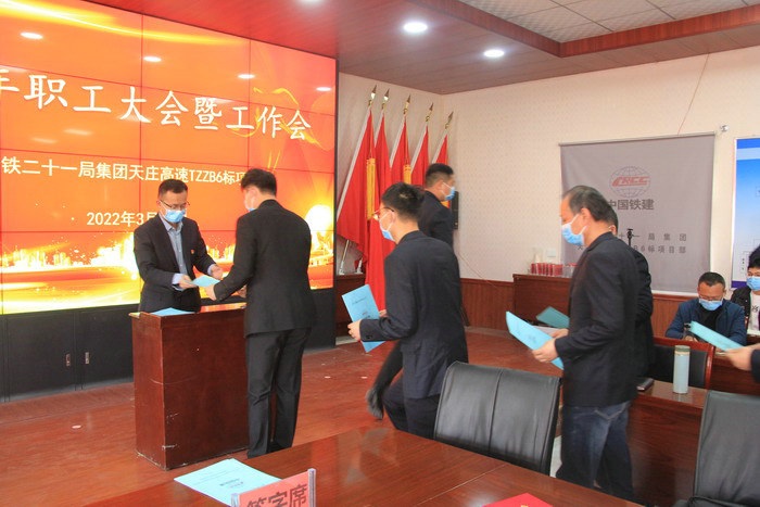 天莊項目2022年職工大會暨工作會在慷慨激昂的《鐵道兵志在四方》歌曲聲中圓滿落幕。