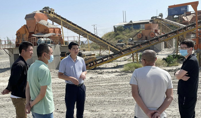 圖為王小慶(右一)在路基施工現(xiàn)場 最后,王小慶一行來到項目碎石場,還專門檢查了碎石生產(chǎn)情況。王總指出,在干好在建項目的同時,還要優(yōu)化經(jīng)營結(jié)構(gòu),要充分發(fā)揮“人無我有”資源優(yōu)勢,錨定屬地料源緊缺現(xiàn)狀,大力開展混凝土、碎石生產(chǎn)、加工、銷售一體化業(yè)務(wù),助推海外項目經(jīng)營多元化轉(zhuǎn)型升級,打造“專精特新”項目品牌,真正發(fā)揮干好一個項目、帶動一片區(qū)域、開辟一方市場的良好效果,推動屬地項目滾動發(fā)展。