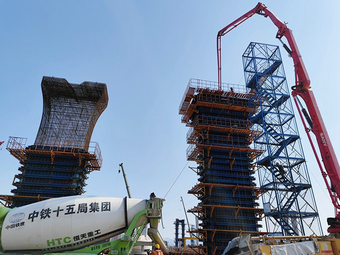 濱?;ネㄊ莵喼拮畲蟮暮I匣ネ?,共設(shè)8座匝道橋,分內(nèi)環(huán)和外環(huán),其中3座上跨、4座下穿金塘大橋,直徑1.8米—2.5米的樁基1027根,平均長度83米。C匝道為外環(huán),樁基34根、F匝道設(shè)在內(nèi)環(huán),樁基83根,一部分走向并行,在匝道橋中相互作用。去年隆冬先后開工的C、F匝道樁基,地處淺海水域,地質(zhì)結(jié)構(gòu)復(fù)雜,在插打鋼護筒、泥漿反循環(huán)鉆孔過程中遭遇堅硬的泥巖和砂巖,進度受阻,該項目部采取由50多噸的液壓振動錘變?yōu)?20噸的液壓振動錘,以超強振動力,強行將鋼護筒振插到83米深處,為鉆孔創(chuàng)造條件。在泥漿反循環(huán)鉆孔作業(yè)中,與泥巖和砂巖相遇,鉆孔十分困難,采取勤換鉆頭、將鉆頭“牙齒”打磨鋒利等多種辦法攻克了鉆孔難題。
