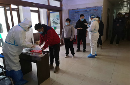 核酸檢測(cè)中 3月的哈爾濱咋暖還寒,此輪新冠疫情來(lái)勢(shì)兇猛。疫情的陰霾并沒(méi)能阻止瑞達(dá)公司生產(chǎn)的熱情及完成全年生產(chǎn)任務(wù)的決心。瑞達(dá)公司為了保證哈爾濱鐵路局2022年大修軌枕及哈爾濱地鐵3號(hào)線的地鐵枕供應(yīng),仍然堅(jiān)持生產(chǎn)。在公司努力積極做好疫情防控工作的同時(shí),疫情防控工作得到了哈爾濱市阿城區(qū)政府的大力支持,在政府的協(xié)調(diào)下,24日起哈爾濱阿城區(qū)疫情防控的兩名核酸采樣人員,每天為瑞達(dá)公司住宿40余名員工免費(fèi)上門(mén)進(jìn)行核酸采樣,為企業(yè)安全生產(chǎn)保駕護(hù)航。