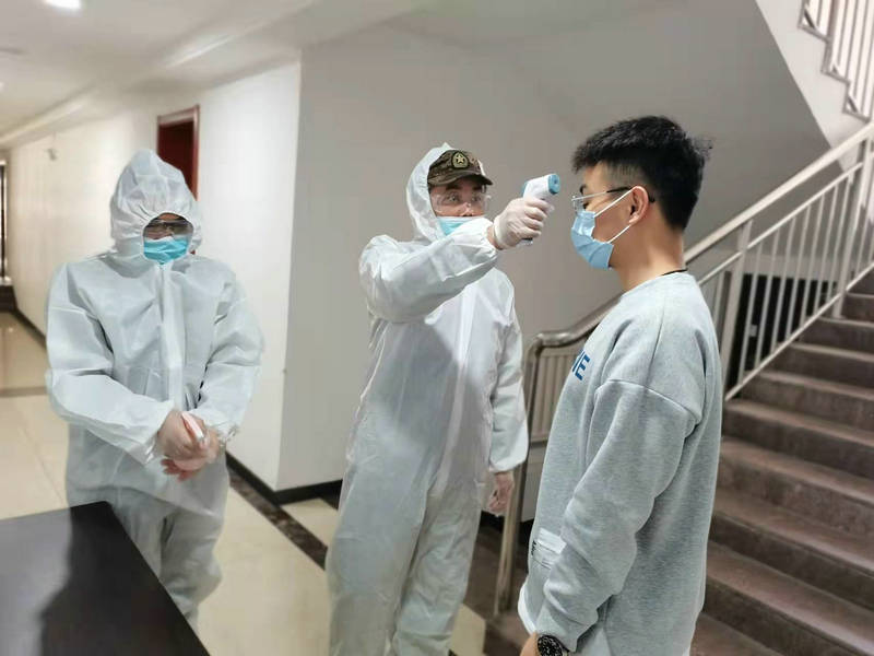 演練采取“現(xiàn)場模擬”和“集中觀摩”的形式,演練現(xiàn)場分為等候測溫區(qū)、信息采集區(qū)、核酸采樣區(qū)和臨時隔離區(qū),確保人員單向流動、全程閉環(huán)不交叉。同時,在模擬入口處設(shè)置監(jiān)測點(diǎn),配備測溫槍、備用口罩、75%酒精等,確保防疫檢測過程不留盲區(qū)、不漏死角。各小組分工明確、操作合理,緊張有序、配合默契,整個演練過程銜接緊密、有條不紊。