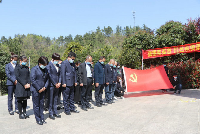 時(shí)屆清明祭先烈,翠柏凝春慰英魂。在溫順的春風(fēng)里,訴不盡對革命先烈的無限深情、道不盡對烈士英魂的無盡哀思。烈士陵園松柏蒼翠,草木蔥蘢,巍峨聳立的革命烈士紀(jì)念碑顯得格外莊嚴(yán)肅穆。上午11時(shí)許,祭掃活動正式開始。首先全體人員向紀(jì)念碑獻(xiàn)上花籃,面向紀(jì)念碑集體唱響國歌并默哀一分鐘。在支部書記的帶領(lǐng)全體人員集體瞻仰了革命烈士紀(jì)念碑,向烈士獻(xiàn)上獻(xiàn)花,表達(dá)深切的哀思和崇高的敬意,讓全體人員接受了一次深刻的黨性教育。