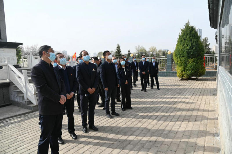 春日的烈士陵園內(nèi),翠柏青青,蒼松肅立,氣氛莊嚴(yán)肅穆,革命烈士紀(jì)念碑巍然屹立,“革命烈士永垂不朽”八個(gè)鎏金大字格外醒目。在公祭革命烈士紀(jì)念碑儀式中,全體人員列隊(duì)行注目禮,奏唱國(guó)歌后,全場(chǎng)肅立,向革命烈士紀(jì)念碑三鞠躬。伴著莊嚴(yán)肅穆的獻(xiàn)花曲,柳倉(cāng)太、祁濤緩步上前,仔細(xì)整理花籃緞帶,并將花籃敬獻(xiàn)于紀(jì)念碑基座前。隨后,大家依次繞行,瞻仰革命烈士紀(jì)念碑和烈士英名紀(jì)念墻,全體人員紛紛敬獻(xiàn)鮮花。