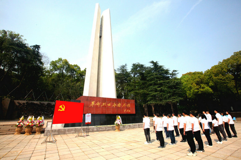 在莊嚴(yán)肅穆的革命烈士紀(jì)念碑下,入黨積極分子代表向紀(jì)念碑敬獻(xiàn)花籃,大家懷著無比崇敬的心情向革命烈士行三鞠躬禮。面對鮮紅的黨旗和高高聳立的烈士紀(jì)念碑,全體成員莊嚴(yán)地重溫了入黨誓詞,感悟穿越時(shí)空的精神力量。