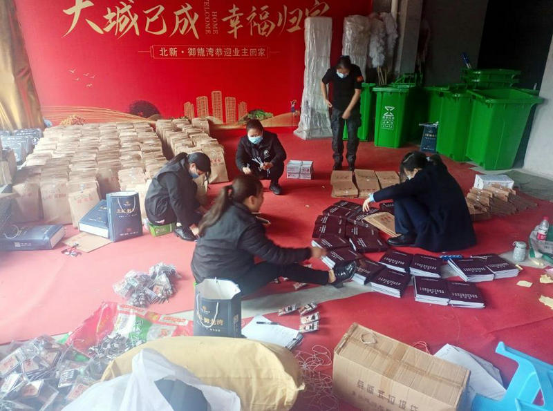 重慶合川訊(通訊員 楊雅茜)北新投資公司所屬重慶北新宜邦物業(yè)公司北新·御龍灣項目八街區(qū)定于2022年3月29日開始交房。集中交房進入倒計時,北新·御龍灣項目在八街區(qū)原定人員配置基礎上,緊急抽調一、二、三、五、六街區(qū)人員擴建八街區(qū)接房工作籌備小組,全力配合做好八街區(qū)交房物料的籌備工作。在此期間,工作組成員連續(xù)多天加班搬運物品、清點資料,在規(guī)定時間內完成了交房物料的籌備。