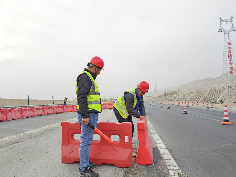 “本次導(dǎo)改將吐和高速主線車輛引入保通線,車流量大,施工難度高,為確保行車安全,項目部對全線設(shè)置行車標志牌,臨近交通導(dǎo)改點前同樣設(shè)置標志警告,定期對行車道的反光膜、爆閃燈、導(dǎo)向標等進行檢查,配備多名交通協(xié)管員24小時不間斷對高速路進行巡查。首段交通導(dǎo)改順利完成,為項目后期規(guī)劃及導(dǎo)改工作提供了寶貴經(jīng)驗!”項目負責(zé)人蔣仁軍說道。