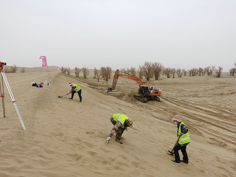(38團-塔中沙漠公路項目工人清理路基側(cè)面)