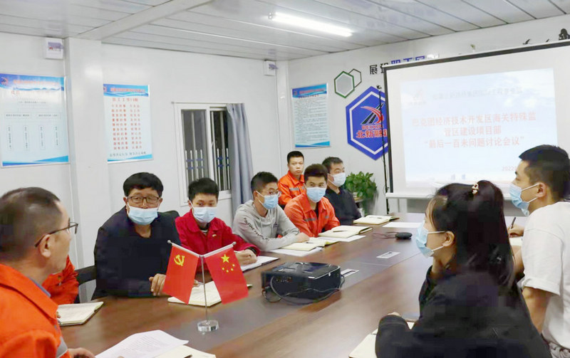 163團訊(通訊員 王金全 趙雅瑾)近日,北新路橋集團國際工程事業(yè)部巴克圖經(jīng)濟技術(shù)開發(fā)區(qū)海關(guān)特殊監(jiān)管區(qū)建設(shè)項目舉辦“百米問題大討論安全生產(chǎn)課堂”,項目安全員、技術(shù)員、各班組長依據(jù)“大學習大調(diào)研大討論”活動要求,就“踐行新發(fā)展理念,推動集團高質(zhì)量發(fā)展”討論方向,結(jié)合施工生產(chǎn)對“百米問題”組織22人參加學習并討論交流。