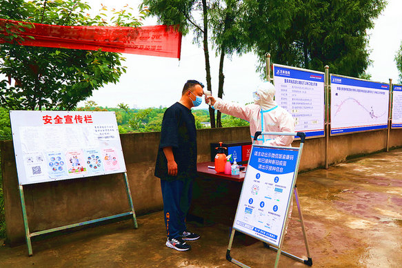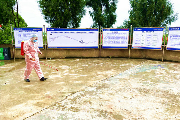 近日,在該項目駐地,由15名職工組成的疫情上報組、通訊聯(lián)絡組、現(xiàn)場急救組、防疫安保組、消殺工作組、物資保障組六個應急小組列成方陣。