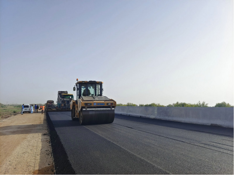 (巴基斯坦N55項(xiàng)目施工大干現(xiàn)場(chǎng)--瀝青面層攤鋪施工 )
