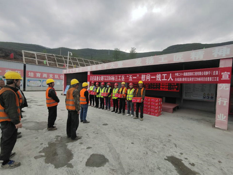 在“五一”國際勞動節(jié)來臨之際,為表達對一線工人的關(guān)懷,振奮團隊精神。4月27日,中鐵二十一局四公司天莊高速公路項目部開展了“五一”慰問一線工人活動。