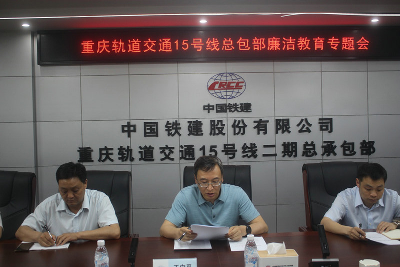 最后,王副書記強(qiáng)調(diào),作為總承包部管理人員要敲起警鐘,高度注意,不妄為自大,帶頭嚴(yán)格執(zhí)行中央八項(xiàng)規(guī)定,落實(shí)廉潔從業(yè)的要求,做到“十個(gè)不得”,不違紀(jì)違規(guī),守住廉潔底線,嚴(yán)于律已,保持清正廉潔,兩袖清風(fēng),務(wù)實(shí)求效,做好服務(wù)基層,服務(wù)職工群眾工作,讓施工單位,職工群眾滿意,讓上級組織放心,爭做遵紀(jì)守法的標(biāo)桿,廉潔從業(yè)的先鋒,為實(shí)現(xiàn)重慶軌道交通15號線工程“干部優(yōu)秀、工程優(yōu)質(zhì)、資金安全、作風(fēng)優(yōu)良”的目標(biāo)貢獻(xiàn)力量。
