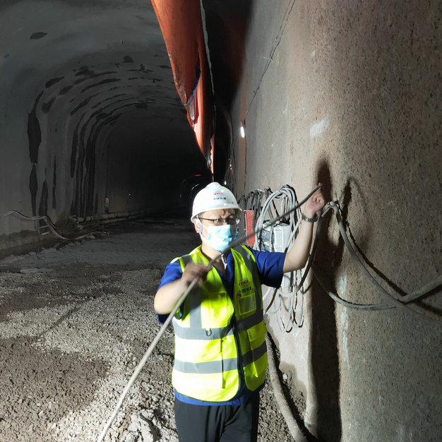 16標(biāo)項(xiàng)目測(cè)量工梁西祖在中梁山隧道現(xiàn)場(chǎng)精心測(cè)量