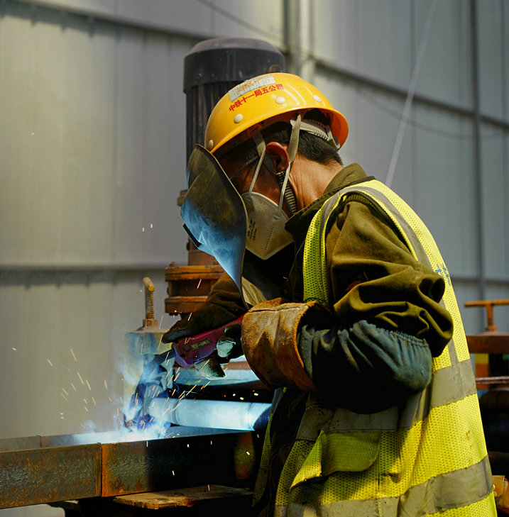 工人們?cè)谥辛荷剿淼纼?nèi)忙碌工作