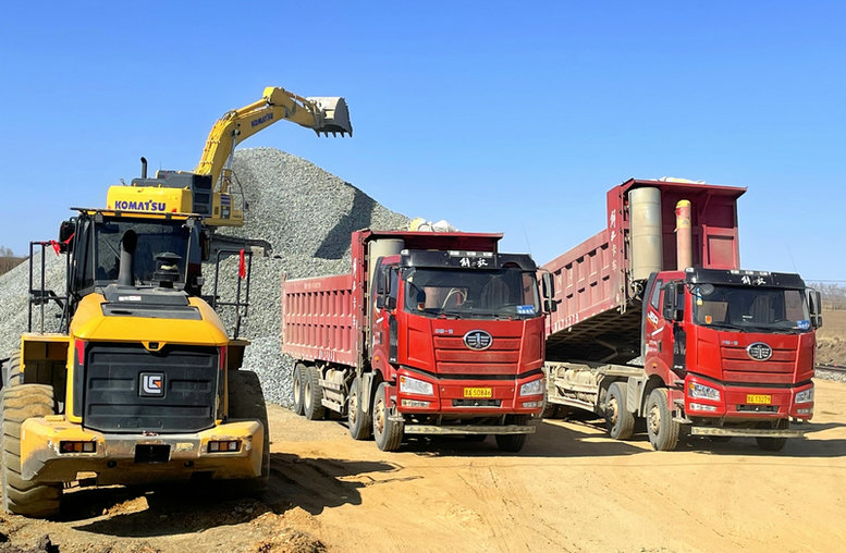 北黑鐵路K261+600至K272+500的10.9公里既有線路基段,需要路基加寬、邊坡護(hù)砌、修筑排水溝等改造施工,為九月初線路封鎖創(chuàng)造條件。節(jié)日期間,工人們正在進(jìn)行路基高填方施工,35臺(tái)重型翻斗車正源源不斷地?fù)屵\(yùn)土方,推土機(jī)、壓路機(jī)配合攤平碾壓,