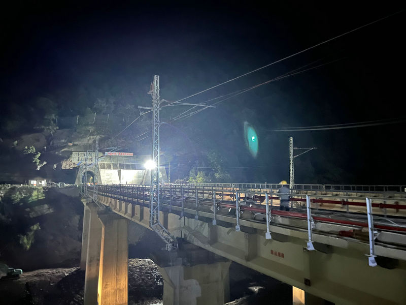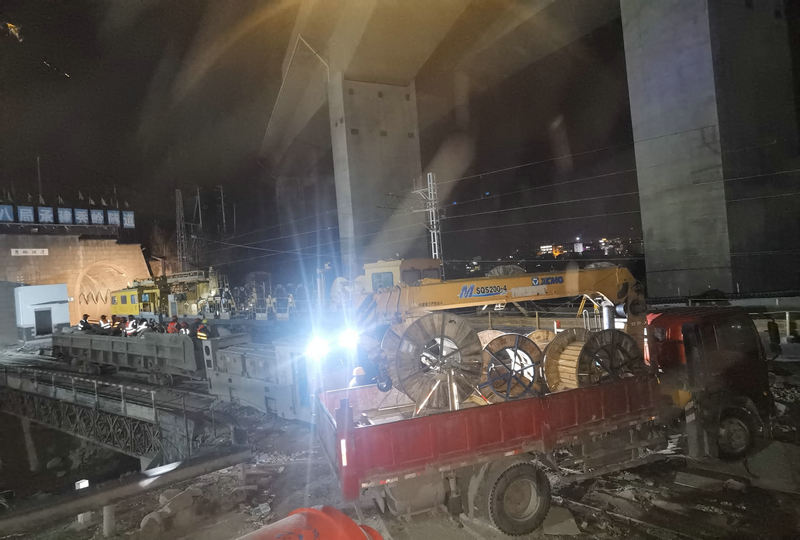 5月8日凌晨 大瑞鐵路大保段承導(dǎo)線架設(shè)完成 王茂林 攝