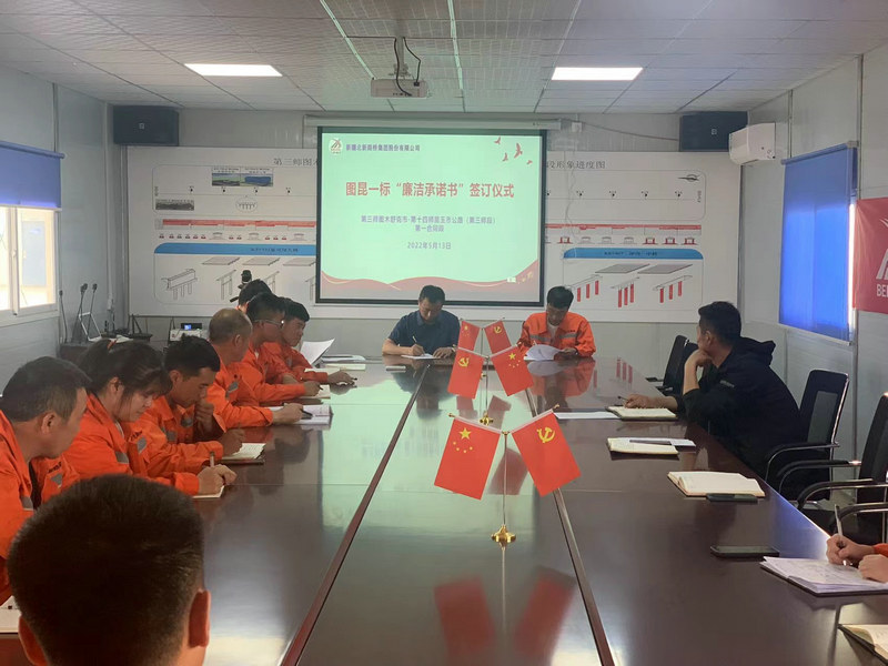 圖木舒克訊(通訊員 梁毅)為持續(xù)深化黨風(fēng)廉政建設(shè),不斷強(qiáng)化干部職工的紀(jì)律規(guī)矩意識,創(chuàng)造清正廉潔的良好氛圍,筑牢思想防線。5月13日,北新路橋集團(tuán)圖昆一標(biāo)項目部組織開展“廉潔承諾書”簽約儀式。本次簽訂工作覆蓋了項目全體領(lǐng)導(dǎo)班子成員及家屬、重點(diǎn)崗位人員共計11份。
