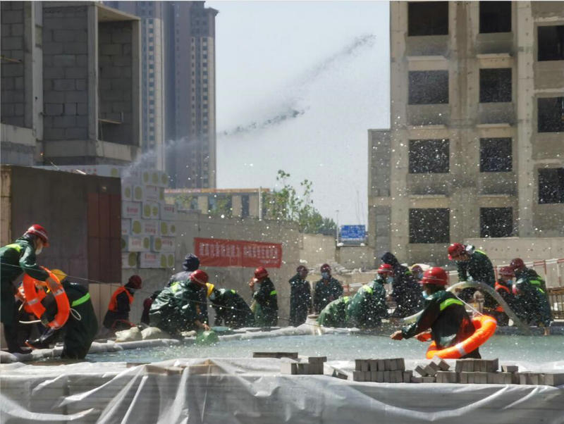 為牢固樹立“生命至上、安全第一”的理念,健全項目安全防控和應急工作機制,切實提高項目防汛應急處置能力,積累防汛實戰(zhàn)經驗,增強工人的防汛防災意識,5月17日,鄭州航空港經濟綜合實驗區(qū)規(guī)劃市政建設環(huán)保局在中交四公局第二建筑公司河南省直青年人才公寓項目組織開展2022年建筑工地防汛應急演練。