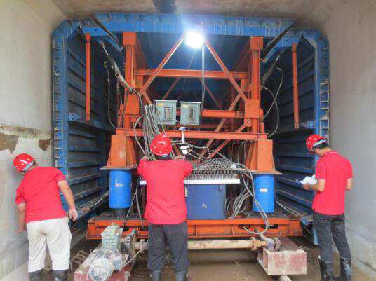 施工現(xiàn)場,管廊施工“機(jī)器人”——模板臺(tái)車在緩緩地前行,在工地大屏幕上顯示混凝土“肌膚”的濕度、溫度、厚度等幾乎是零誤差,管廊內(nèi)壁混凝土拆模后呈現(xiàn)“三面光”。“按照傳統(tǒng)工藝,管廊主體混凝土施工采用立模板、綁扎鋼筋、澆筑混凝土等繁瑣工藝,不僅浪費(fèi)人力物力,而且容易造成誤差。”三公司津冀工程項(xiàng)目管理部經(jīng)理王海偉介紹,項(xiàng)目部與廠家合作研發(fā)管廊襯砌臺(tái)車,讓施工“多快好省”,克服了組合鋼模板拼縫多、加固復(fù)雜繁瑣拆卸困難的缺點(diǎn),混凝土外觀大大提升,作業(yè)人員減少8人,施工速度提高三分之一,整體平整度誤差低于3毫米,管廊襯砌臺(tái)車被三公司評(píng)為創(chuàng)新工裝。