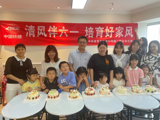 6月1日,中鐵建重慶軌道15號(hào)線二期總承包部舉辦“清風(fēng)伴六一 培育好家風(fēng)”蛋糕DIY親子活動(dòng)??偝邪柯毠ご砑捌渥优畢⒓踊顒?dòng)。