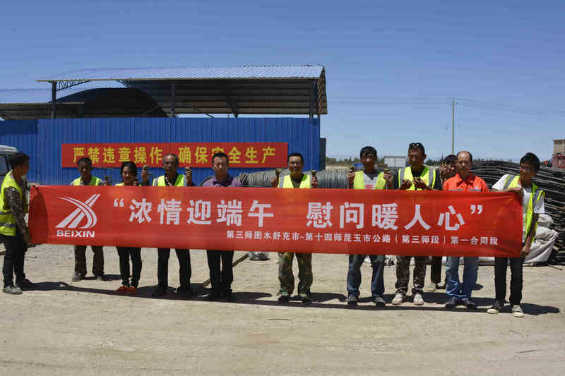 濃情迎端午 慰問暖人心。目前,圖昆公路(三師段)一標項目正處于項目建設(shè)的關(guān)鍵時期,為保證如期完成施工節(jié)點,全體參建人員堅守崗位,如火如荼地開展生產(chǎn)大干。此次慰問活動,讓農(nóng)民工兄弟感受了溫暖,增強了凝聚力。各勞務(wù)班組對項目的真情關(guān)懷表達感謝,并紛紛表示,一定努力工作,克服困難,以實際行動確保工程工期目標順利實現(xiàn)。