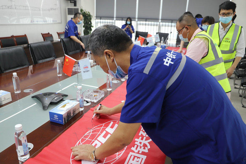 項(xiàng)目經(jīng)理趙建偉帶頭在安全承諾橫幅上簽名