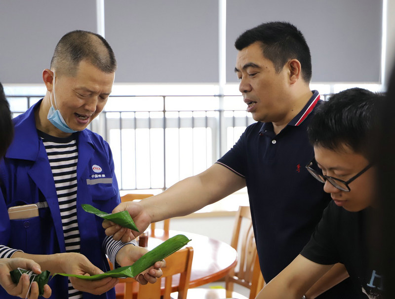 為牿勞在節(jié)日加班加點(diǎn)的員工,營(yíng)造良好的節(jié)日氛圍,項(xiàng)目部組織“包粽子, 做香囊, 慶端午”主題活動(dòng),邀請(qǐng)部分員工家屬參與活動(dòng),大家歡聚一堂,穿針引線,選取艾草香料,制定專屬香囊;疊粽葉,加糯米,手腳麻利,一個(gè)個(gè)誘人的粽子躍然桌上,使大家品嘗到自制粽子的飄香。