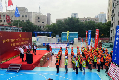 (咸陽訊)6月9日上午,中鐵一局建安公司北塬基地改造項目2022年“安全生產(chǎn)月”暨“關(guān)愛工友送清涼”活動在項目部駐地隆重舉辦。