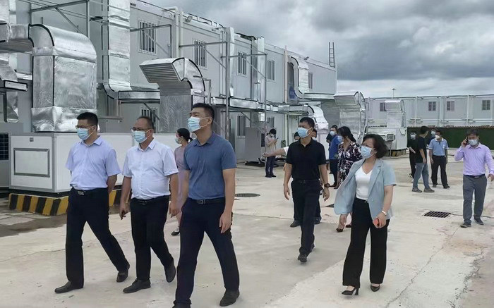 圖為參觀方艙醫(yī)院外景 玉林市衛(wèi)計(jì)委領(lǐng)導(dǎo)說(shuō):“建設(shè)方艙醫(yī)院并不是疫情嚴(yán)重的信號(hào),是基于當(dāng)下奧密克戎毒株感染者整體癥狀比較輕,為了最大可能地釋放醫(yī)療資源。此時(shí)的方艙醫(yī)院與既往方艙醫(yī)院的功能、定位均不盡相同,以收治新冠病毒無(wú)癥狀感染者和輕型確診病例為主,不僅能完成對(duì)感染者的隔離與基本醫(yī)療,還可以減少定點(diǎn)醫(yī)院醫(yī)療資源的占用。”他強(qiáng)調(diào),疫情防控、人人有責(zé),打贏疫情防控戰(zhàn)役的道路上離不開(kāi)所有人的共同努力;向奮戰(zhàn)在建設(shè)一線的中鐵二十一局三公司工作人員致以崇高的敬意。希望大家不忘初心、牢記使命,助力欽州疫情防控大局。