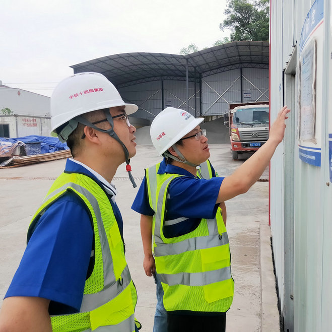 項(xiàng)目黨支部書記何偉檢查黨建+安全上墻公示情況