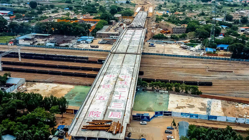 由中鐵五院、中鐵二十三局集團聯(lián)合承建的齊齊哈爾民航路跨線橋工程,是該市“雙向雙軸、一環(huán)九射”主干路網(wǎng)布局的重要組成部分,黑龍江省“百大項目”之一,全長2.793公里,橋梁部分長897.3米。2020年6月開工建設以來,承包單位先后攻克了臨近既有鐵路深基坑、大體積混凝土澆筑、高精度轉體支座安裝、大節(jié)段梁部混凝土澆筑、超長預應力束張拉等諸多制約環(huán)節(jié),經(jīng)過720天的不懈努力,安全優(yōu)質高效完成了主橋施工任務,為順利轉體施工奠定了堅實基礎。