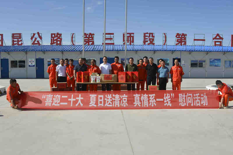 圖木舒克訊(通訊員 梁毅)6月24日,北新路橋集團(tuán)黨委書(shū)記、董事長(zhǎng)張斌赴圖木舒克分公司開(kāi)展“夏送清涼”慰問(wèn)調(diào)研活動(dòng),把“我為群眾辦實(shí)事”實(shí)踐活動(dòng)落到了實(shí)處。集團(tuán)公司副總經(jīng)理孫杰,兵團(tuán)交建公司黨委副書(shū)記、總經(jīng)理趙睿龍,圖木舒克分公司相關(guān)負(fù)責(zé)人陪同調(diào)研并參加慰問(wèn)活動(dòng)。