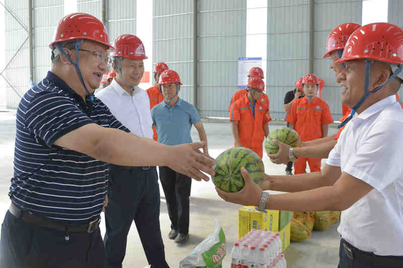 活動(dòng)中, 張斌一行為職工送去水果、飲品、藥品等防暑降溫物資,向大家致以誠(chéng)摯的問(wèn)候,并囑托大家科學(xué)調(diào)配作息時(shí)間,統(tǒng)籌做好疫情防控、安全生產(chǎn)、防暑降溫等相關(guān)工作,并勉勵(lì)全體員工要發(fā)揚(yáng)勇于開(kāi)拓、敢打硬仗的優(yōu)良作風(fēng),拓市場(chǎng)、保履約,確保順利完成2022年目標(biāo)任務(wù)。