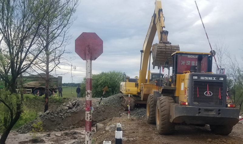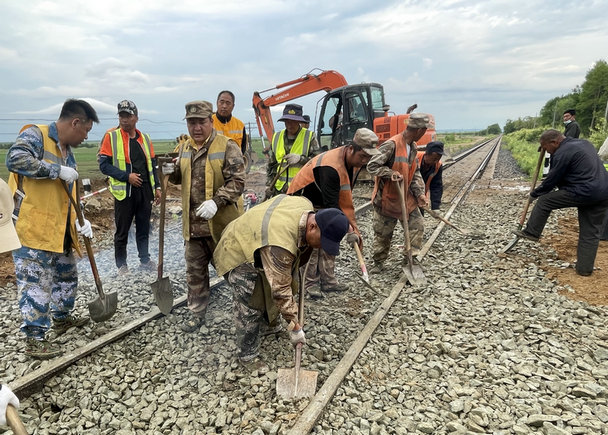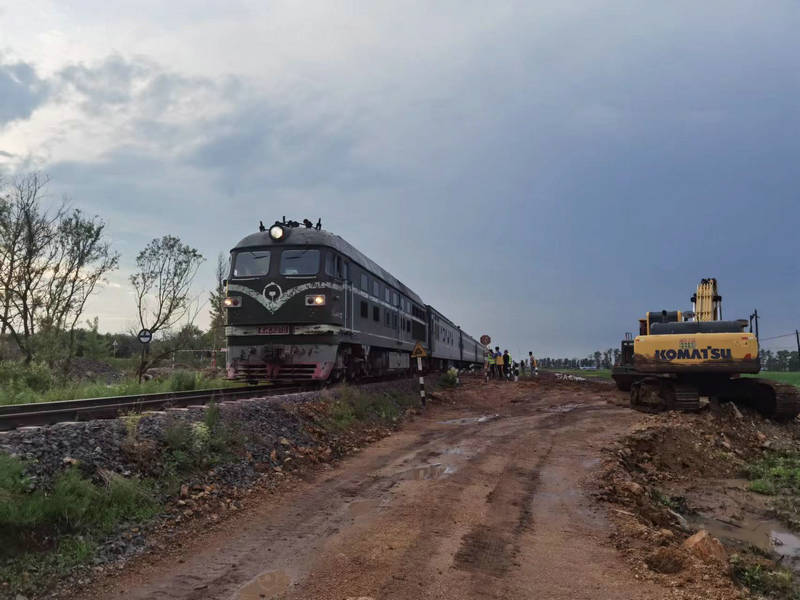 連日來,黑龍江省黑河市境內(nèi)雨水頻繁,受持續(xù)強(qiáng)降雨影響,6月23日下午,北黑鐵路錦河至西崗子區(qū)間K261+600地段突發(fā)洪水30米路基被沖毀,行車受到影響。緊急時刻,正在附近施工的中鐵二十三局集團(tuán)北黑鐵路項目部迅速啟動應(yīng)急預(yù)案,項目書記張志軍帶領(lǐng)20余名搶險員、3臺挖掘機(jī)、2臺裝載機(jī)和5輛自卸車及其他搶險車輛,冒雨出發(fā)僅用10分鐘便趕赴水害地段。按照黑龍江省黑河鐵路集團(tuán)有限責(zé)任公司安排,接受任務(wù)后,迅速展開搶險施工。