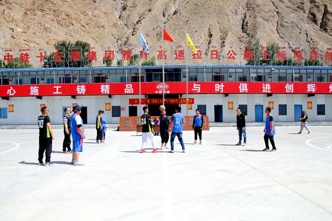 座談會(huì)結(jié)束后,項(xiàng)目黨支部為每名黨員發(fā)放了政治生日賀卡及學(xué)習(xí)筆記本等物品。還組織與尼木縣交通局、檢查站聯(lián)隊(duì)進(jìn)行了一場籃球友誼賽,比賽中、雙方隊(duì)員積極拼搶、勇猛頑強(qiáng)、既賽出了友誼、又賽出了水平。在熱烈的氣氛中圓滿完成了此次主題黨日活動(dòng)。