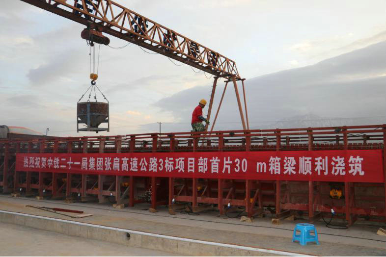 9月19日下午19:08分,中鐵二十一局四公司張扁高速公路項目部洪水河大橋30米箱梁預(yù)制施工現(xiàn)場鞭炮齊鳴、禮花齊放,歡慶第一片箱梁預(yù)制成功,這標(biāo)志著整體施工進度取得重大進展,同時為后續(xù)箱梁預(yù)制積累了豐富的實戰(zhàn)經(jīng)驗。