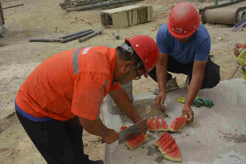 該項目正值建設高峰期,廣大工友們不畏酷暑,在高溫下堅守崗位,見此狀況,項目部工會小組迅速行動,為工人們送去藿香正氣水、西瓜、綠豆等防暑物品。項目部負責人叮囑勞務隊要合理安排高溫天氣下工人的施工計劃,妥善安排好工人的生活飲食,并加強高溫期間的安全生產檢查力度,保障工人安全的工作環(huán)境,主動作為,多措并舉戰(zhàn)勝酷暑。