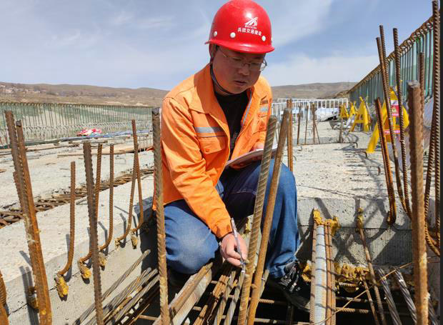 他曾自嘲是扎根大西北的一顆“螺絲釘”,從2007年入職北新路橋先后輾轉(zhuǎn)參與四個項目的施工建設(shè),始終沒離開過高原荒漠;他也曾“抱怨”過工作的單調(diào),從最開始選擇這個崗位,15年的精力全部投注在質(zhì)量檢驗里。生活中靦腆、不善言辭的他,聊起工作,卻能侃侃而談、滔滔不絕,特別是專業(yè)知識方面,常常能駁得對方敗下陣來,這份強烈的“反差”正源自于他扎根基層的長期歷練和工作經(jīng)驗的豐富積累。他叫曹庭彥,現(xiàn)任北新路橋集團分公司卓合高速ZH02項目部質(zhì)檢員。