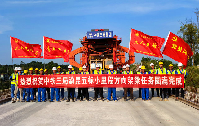 7月12日,在中鐵三局渝昆高鐵五標(biāo)架梁現(xiàn)場,一榀長32米、重達(dá)790噸的箱梁在地咀上特大橋1#墩-0#臺平穩(wěn)落定,標(biāo)志著中鐵三局渝昆高鐵川渝段站前五標(biāo)小里程方向箱梁架設(shè)任務(wù)全部完成,較施組提前25天完成目標(biāo)節(jié)點(diǎn)工期,架梁施工取得階段性勝利,為后續(xù)橋面系及無砟軌道施工的全面開展奠定了堅(jiān)實(shí)基礎(chǔ)。