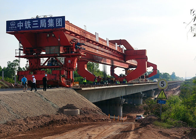 中鐵三局承擔(dān)渝昆高鐵川渝段站前五標(biāo)511孔箱梁架設(shè)任務(wù),其中小里程方向共需架設(shè)272孔,該方向由33座橋,32處路基及2處連續(xù)梁組成。面對箱梁運(yùn)距遠(yuǎn)、橋間轉(zhuǎn)移頻繁、特殊結(jié)構(gòu)多、夏季高溫等困難,安全圓滿完成架梁施工任務(wù)。一是細(xì)分計(jì)劃任務(wù),強(qiáng)化過程控制,使每道工序始終處于受控狀態(tài),保證架梁施工順利進(jìn)行;二是認(rèn)真梳理施組,精心組織,合理配置資源,提高施工效率;三是積極開展勞動競賽,以“安全優(yōu)質(zhì)鑄精品、創(chuàng)新爭優(yōu)當(dāng)先鋒”勞動競賽為契機(jī),全面掀起施工熱潮,針對運(yùn)梁距離遠(yuǎn)達(dá)19公里,實(shí)行運(yùn)梁作業(yè)兩班倒,項(xiàng)目班子成員輪流盯控,做好運(yùn)梁通道障礙物辨識、監(jiān)督操作司機(jī)狀況、設(shè)備狀況檢查,掌握每一個環(huán)節(jié),安全質(zhì)量雙管齊下,以分秒必爭的行動實(shí)現(xiàn)整個項(xiàng)目工期目標(biāo);四是嚴(yán)格落實(shí)領(lǐng)導(dǎo)帶班制度,強(qiáng)化現(xiàn)場管控,專職安全生產(chǎn)管理人員全程跟蹤,始終堅(jiān)持以標(biāo)準(zhǔn)化管理示范為導(dǎo)向,確保施工安全有序進(jìn)行。