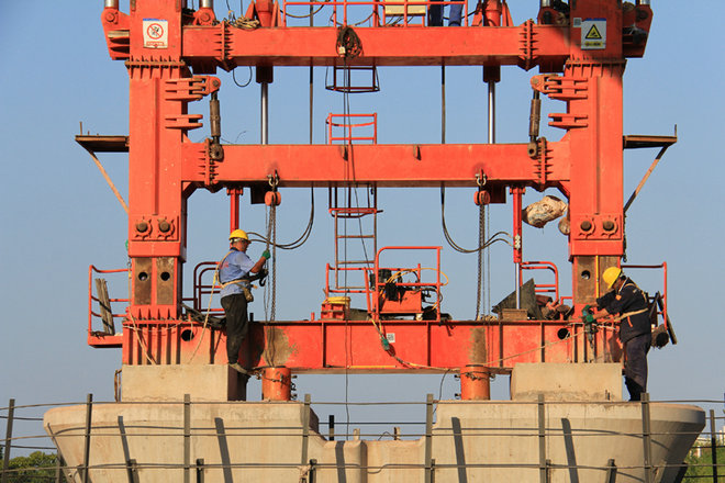 下一步,架橋機(jī)將在宜賓東制梁場內(nèi)利用運(yùn)梁便道、搬梁機(jī)縱移通道及部分臺座位置完成調(diào)頭,準(zhǔn)備開啟大里程昆明方向剩余的192孔箱梁架設(shè)。