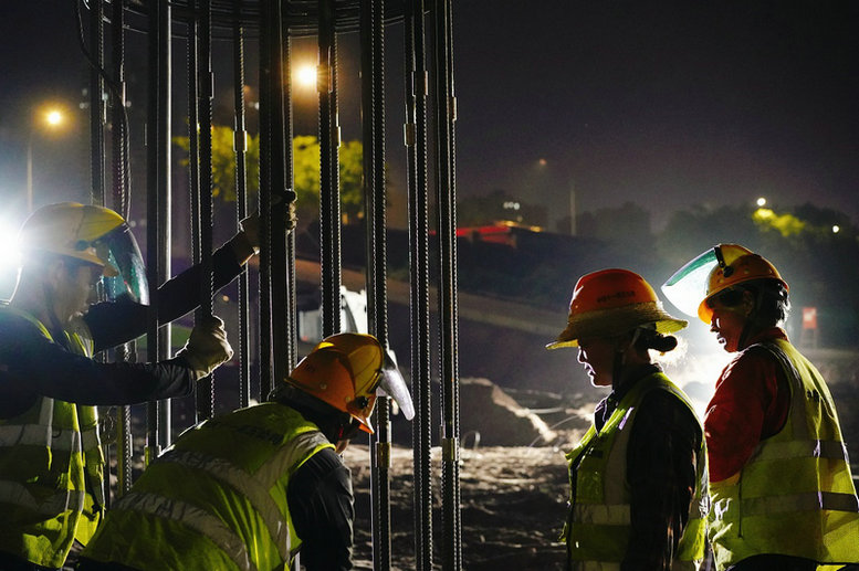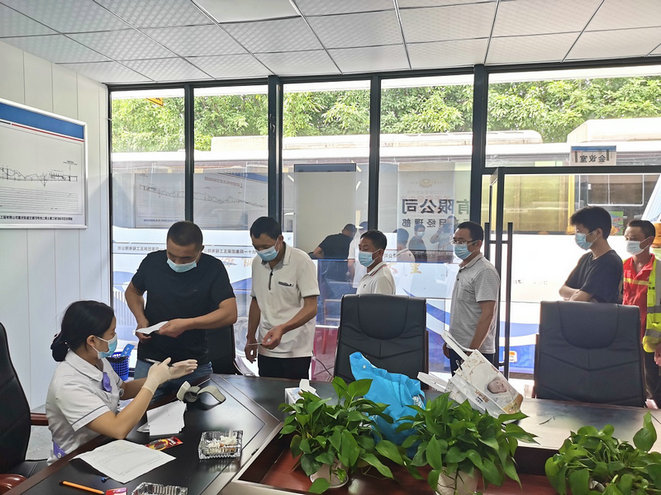 為應(yīng)對高溫,項目部合理調(diào)整高溫作業(yè)時間,避開高溫時段,確保施工生產(chǎn)和員工身體健康“兩全”。項目經(jīng)理趙建偉多次強調(diào),“在施工進度和工人身體健康沖突的情況下,我們一定要先保健康”,為確保員工在高溫期身體健康,項目部將醫(yī)療檢查設(shè)備搬到施工一線,開展中暑急救措施培訓(xùn),定期對施工人員進行簡單體檢,防止高空、高溫作業(yè)發(fā)生意外。