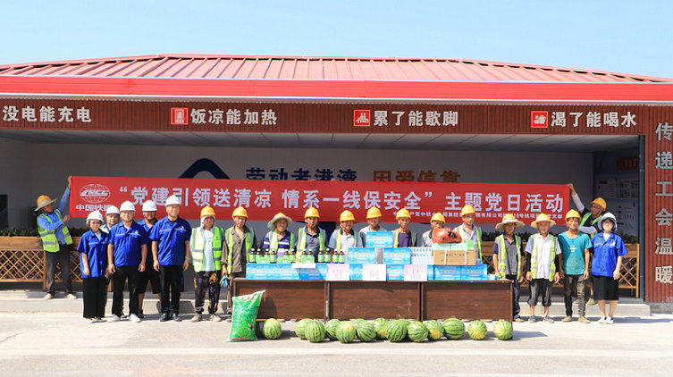 項目部黨支部開展“黨建引領(lǐng)送清涼,情系一線保安全”主題黨日活動,給一線作業(yè)人員送去綠豆湯、西瓜、涼茶、防暑藥品等清涼“大禮包”。
