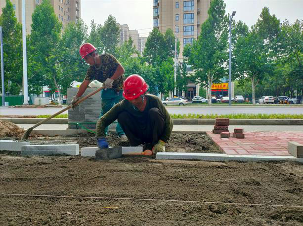 在該項(xiàng)目承建的濟(jì)源大道、愚公路和沁園路等路段,工人們正頂著炎炎烈日,按照工序有條不紊的進(jìn)行鋪設(shè),隨著水泥砂漿的填鋪和橡膠錘連續(xù)厚重?fù)舸?,一條嶄新的紅色道路逐漸延伸開(kāi)來(lái)。隨著工程推進(jìn),該項(xiàng)目多條路段已逐步開(kāi)放通行,人行道部分施工充分考慮道路使用實(shí)際需求,抽調(diào)人員優(yōu)先“攻堅(jiān)”區(qū)域人流量較大路段,分段同步進(jìn)行施工,大大提升鋪設(shè)效率。同時(shí),加強(qiáng)過(guò)程監(jiān)督,及時(shí)提供技術(shù)指導(dǎo)并督促問(wèn)題整改。目前,該項(xiàng)目全速推進(jìn)工程進(jìn)度,加大對(duì)現(xiàn)場(chǎng)安全文明施工管理,施工建設(shè)已全面進(jìn)入大干沖刺階段。