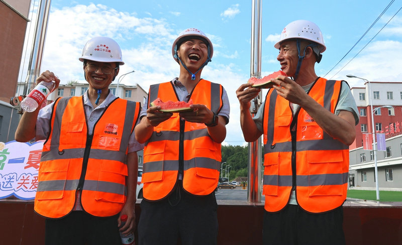 一聲聲問候、一句句叮囑,傳遞著工會組織的溫馨關(guān)愛,讓大家備受激勵和鼓舞。“目前沈白高鐵施工已經(jīng)進入了全面攻堅階段,工期節(jié)點壓力大、任務(wù)繁重。特別是入伏以來,炎熱天氣居高不下,項目在抓好施工進度的同時,采取了合理調(diào)整作息時間避開高溫時段戶外作業(yè),食堂增加涼菜、綠豆湯等降溫飲食等辦法,多措并舉落實防暑降溫措施。我們要把組織的關(guān)懷化作攻堅克難的強大動力,不負(fù)重托、守土擔(dān)責(zé),不僅工程要為企業(yè)爭光創(chuàng)譽,更要保證職工度過健康安全的盛夏”項目經(jīng)理田延巍的對員工關(guān)愛之情溢于言表,又表明了項目的決心和態(tài)度。
