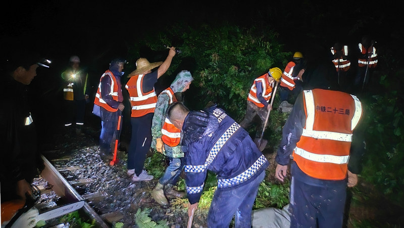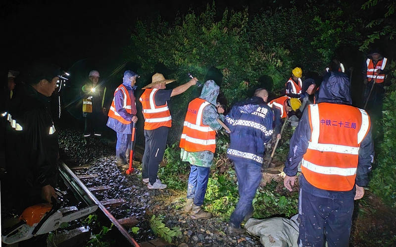 “今天傍晚的持續(xù)強降雨導(dǎo)致渾白鐵路三處路塹邊坡滑坡,危及鐵路行車安全,請求支援”。7月23日20時19分,隨著一陣急促的手機鈴聲響起,中鐵二十三局集團沈白高鐵項目部三分部接到了通化鐵路工務(wù)段泉陽線路車間書記李同旭的求援電話,分部經(jīng)理郭曉斌聞“汛”而動,迅速調(diào)集車輛、集結(jié)人員,火速奔赴水害現(xiàn)場......