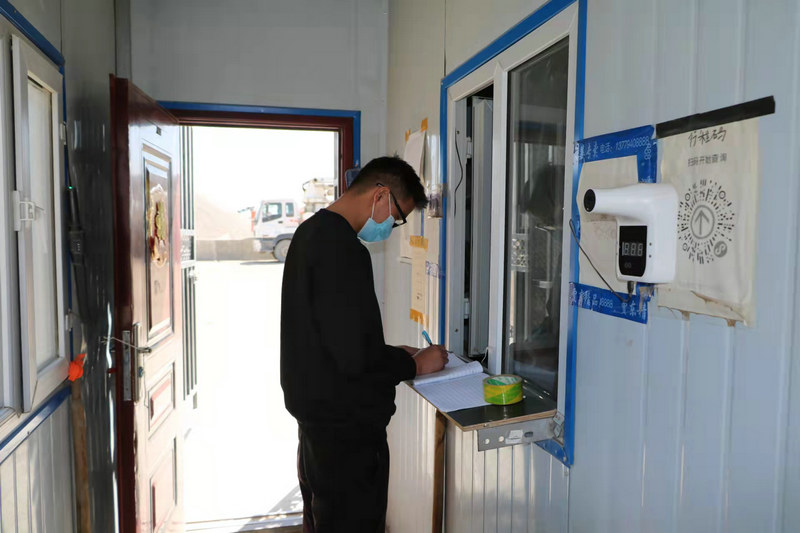 本次疫情防控應急演練圍繞“外防輸入、內(nèi)防反彈”的工作任務,以預設對現(xiàn)場某一工人進行日常掃碼、體溫檢測時發(fā)現(xiàn)其體溫異常過高為背景開展。針對預設的突發(fā)情況,項目部立即召集防疫領導小組和項目部全體人員,啟動應急預案。項目部按照流程,第一時間向駐地社區(qū)和公司匯報,通知項目部應急小組負責人按照預案要求展開應急處置相關工作,各小組接到指令后,按照預案相關職責展開工作,并及時向項目疫情指揮部匯報工作進展情況。在完成對周邊的不間斷消殺和對涉疫人員進行就地隔離后,安排專人向職工解疑釋惑,保持項目部全體職工的思想穩(wěn)定。