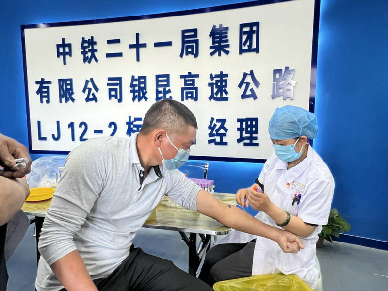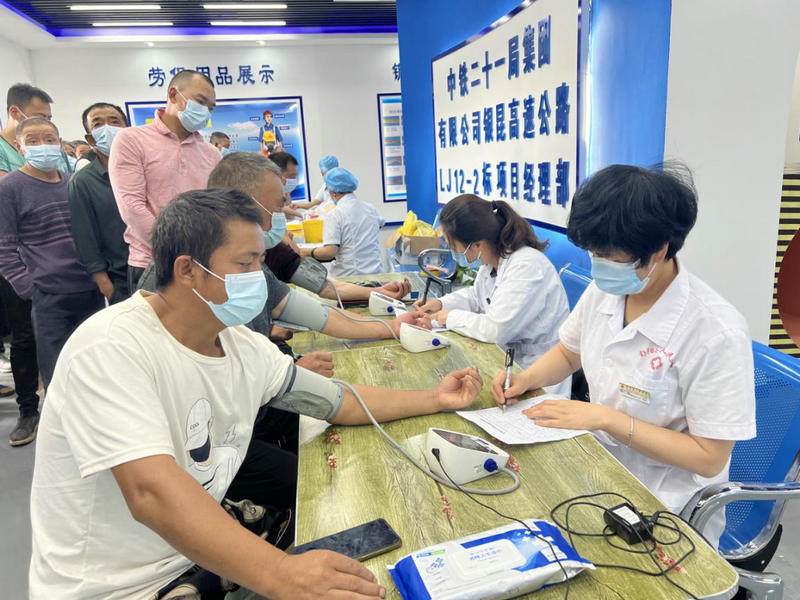 為加強(qiáng)現(xiàn)場(chǎng)施工作業(yè)人員的健康監(jiān)護(hù),7月25日至28日,中鐵二十一局銀昆高速公路LJ12-2標(biāo)項(xiàng)目部開展“健康體檢進(jìn)工地、情暖一線勞務(wù)工”體檢活動(dòng),邀請(qǐng)彭陽縣人民醫(yī)院體檢科醫(yī)生為施工現(xiàn)場(chǎng)六百多名勞務(wù)人員進(jìn)行健康體檢,真正把勞務(wù)人員的“心上事”當(dāng)成“上心事”。