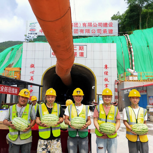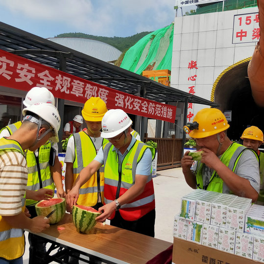 項(xiàng)目部書(shū)記何偉給隧道員工切西瓜