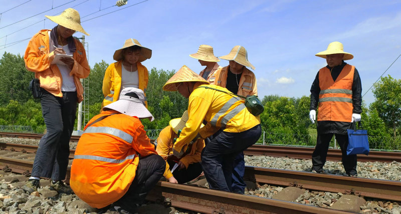 實(shí)踐是理論的檢驗(yàn)。上午理論課程結(jié)束后,中午天窗點(diǎn)工程師牛付濤帶領(lǐng)隊員來到現(xiàn)場,即使是似火的驕陽也抵擋不住示范隊學(xué)員們學(xué)習(xí)的熱情,烈日下小伙子們用鋼卷尺測量曲線全長拉測點(diǎn),測量曲線各測點(diǎn)正矢;利用一弦測量各測點(diǎn)的矢距,計算各測點(diǎn)計劃正矢和矢距?,F(xiàn)場中,隊員們分組協(xié)作井然有序,大大的提高了天窗點(diǎn)利用率。天窗結(jié)束,牛付濤再次帶領(lǐng)隊員來到學(xué)習(xí)室,對理論進(jìn)行驗(yàn)證和應(yīng)用,對現(xiàn)場數(shù)據(jù)進(jìn)行分析,并制作曲線整治方案。